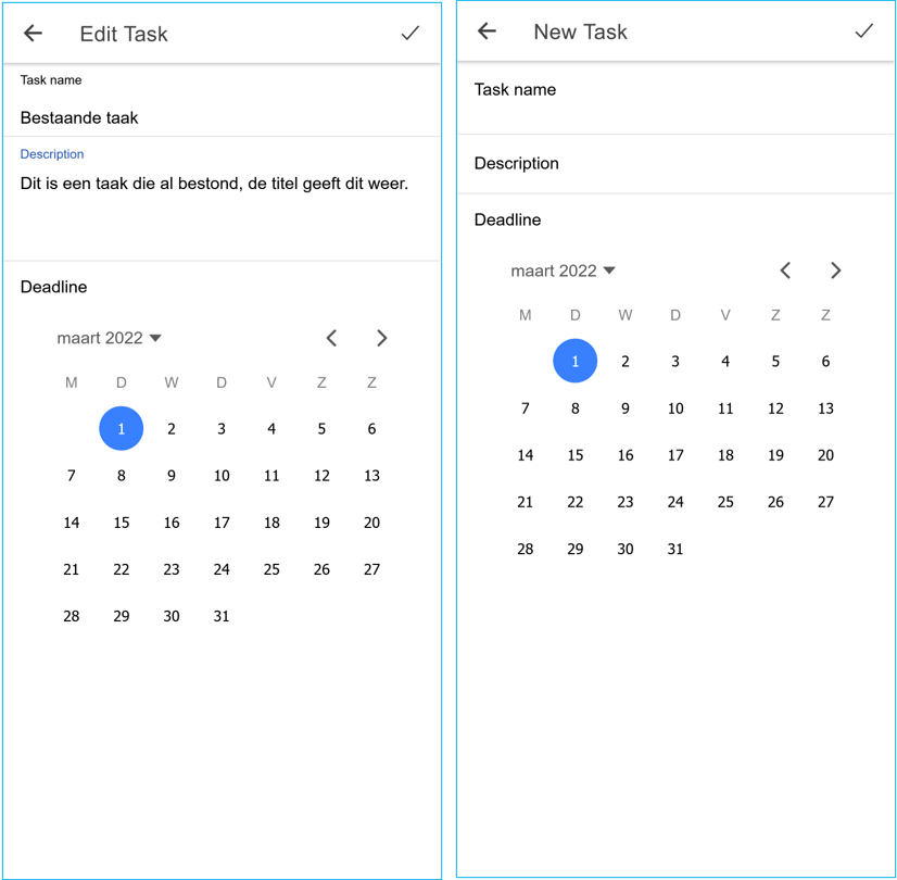 Momenteel toont de TaskPage altijd de titel "New Task" zorg dat deze aangepast wordt naar "Edit Task" als de pagina gebruikt wordt om een bestaande taak aan te passen.