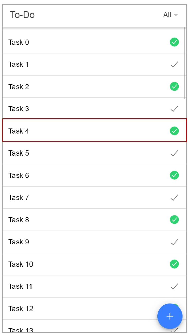 De UI voor de TaskPage is gedefinieerd in de startbestanden. Plaats deze bestanden in je project. Via de FAB-button kunnen we nu de TaskPage bekijken.